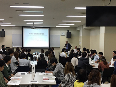 午後の部では、障がい当事者講師の会すぷりんぐの牧野准子代表と古長尚義氏に、お話いただき、当事者の思い、支援者側の在り方へ理解を深めました。